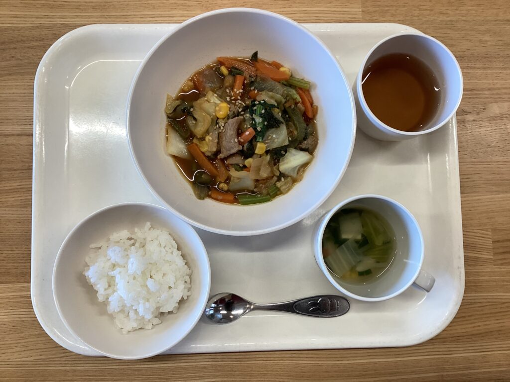 1月15日(木) お昼:ごはん・回鍋肉・カニ豆腐汁 おやつ:マカロニ安倍川 回鍋肉の名前の由来は、一度茹でた豚肉を再び鍋に戻して炒めるという調理法からきていると言われています 豚肉はもちろん、キャベツ、玉ねぎ、人参、ピーマン、小松菜、コーンと野菜がたくさん入っていて 栄養満点です♪ 保護者の方から頂いた白菜を汁に使用しました 1月14日(水) 前の記事 1月16日(金) 次の記事