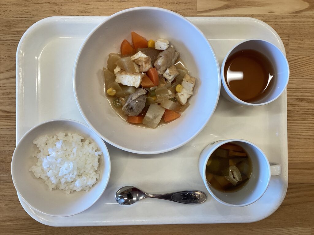 1月29日(木) お昼:ごはん・大根の煮物・すまし汁 おやつ:麩ラスク 今日のすまし汁に使用しているかぶは今が旬です 根と葉で栄養素が異なる優れた栄養野菜です 白い根の部分は消化酵素(アミラーゼ)が豊富で胃腸に優しく 葉はビタミンC、カルシウム、β-カロテンを豊富に含む緑黄色野菜です ビタミンKも豊富で骨の健康にも役立ちます 保護者の方から頂いた大根を煮物に使用しています 1月28日(水) 前の記事 1月30日(金) 次の記事