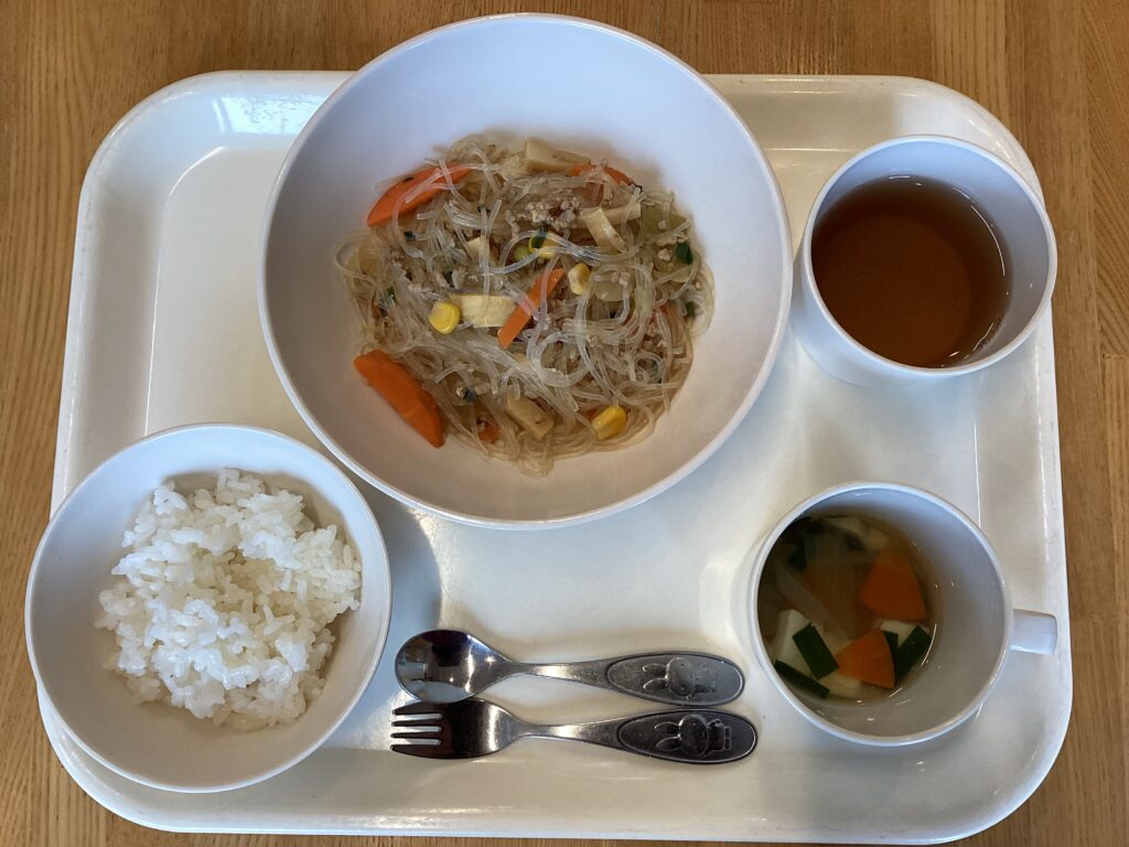 3月2日(月) お昼:ごはん・春雨のそぼろ炒め・中華スープ おやつ:シフォンケーキ 今日のメニューは子どもたちに人気の高いメニューなので、とても喜んで食べていました おやつのシフォンケーキは、年少さん、年中さんの希望メニューです 「やわらかーい」「美味しい」との声が沢山聞こえてきました♪ 2月27日(金) 前の記事 3月3日(火) 次の記事