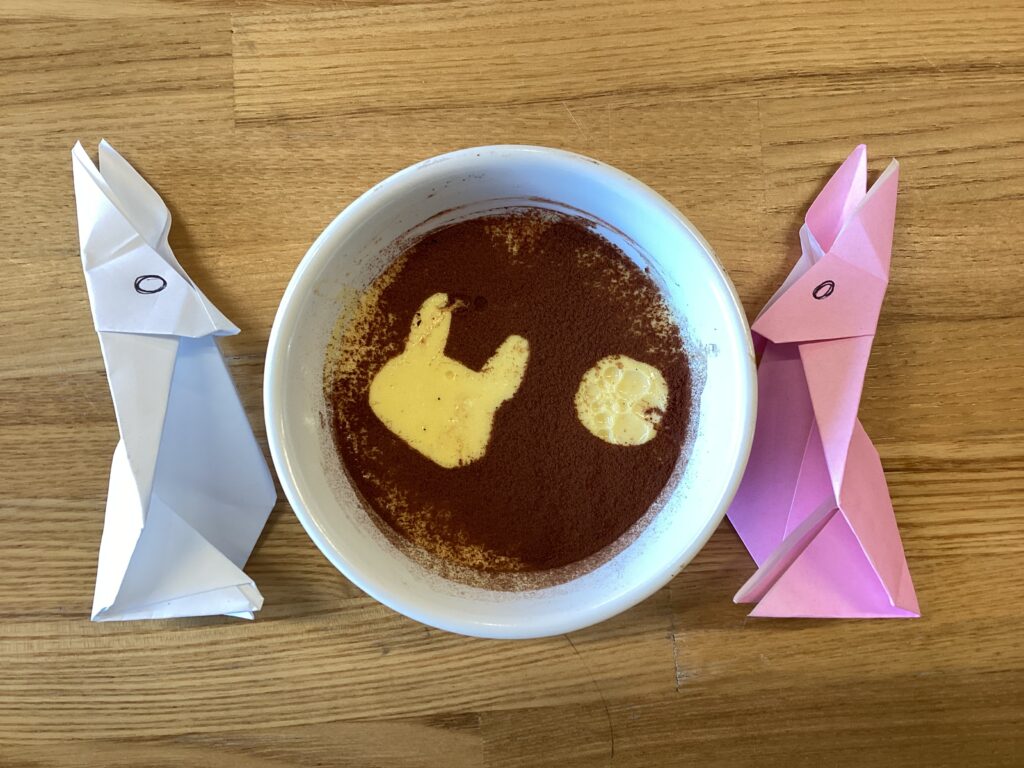 おやつのかぼちゃプリンはお月見しているウサギをイメージしてトッピングしています