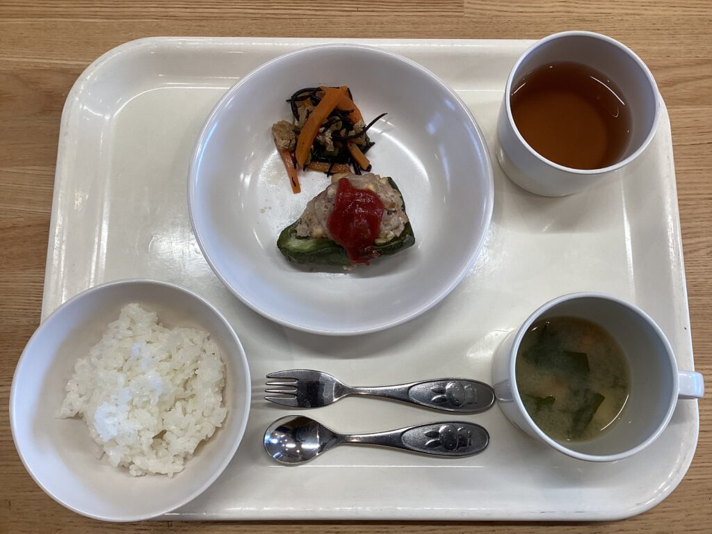 2月5日(木) お昼:ごはん・ピーマンの肉詰め・ひじきの大豆煮・みそ汁 おやつ:ぶどうゼリー 今日のピーマンの肉詰めは一つ一つ手作業でピーマンに肉を詰めています 豚肉に含まれるビタミンB1が疲労回復に、ピーマンのビタミンⅭ、K、鉄分が 風邪予防などに役立ちます 2月4日(水) 前の記事 2月6日(金) 次の記事