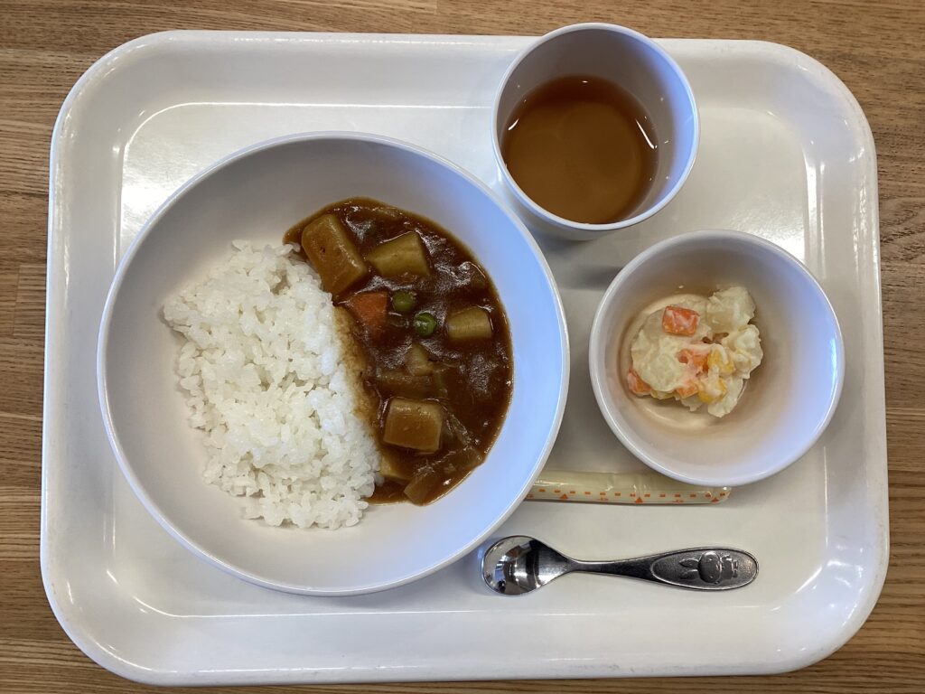 1月5日(月) お昼:カレーライス・コロコロサラダ・チーズ おやつ:蒸しパン 今日は今年最初の給食です♪ カレーライスの具材はツナと玉ねぎ、人参、じゃがいもを使用しました コロコロサラダは名前の通り、コロコロになるように角切りにしました 両方のメニューにじゃがいもを使用しています じゃがいもは、ビタミンC、カリウム、食物繊維が豊富で、胃腸の健康維持、疲労回復などに役立つ 栄養価の高い食材です 12月26日(金) 前の記事 1月6日(火) 次の記事
