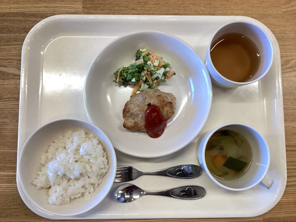 1月9日(金) お昼:ごはん・ハンバーグ・チーズサラダ・コンソメスープ おやつ:プリン 保護者の方からブロッコリーと白菜を頂きました ブロッコリーはサラダに、白菜はスープに使用しました ブロッコリーとチーズの組み合わせは、栄養バランスが良く、マヨネーズで和えた だけでもチーズのコクでまろやかになり食感もいいので人気のある一品です おやつのプリンは年中さんの希望メニューです♪ 1月8日(木) 前の記事 1月13日(火) 次の記事