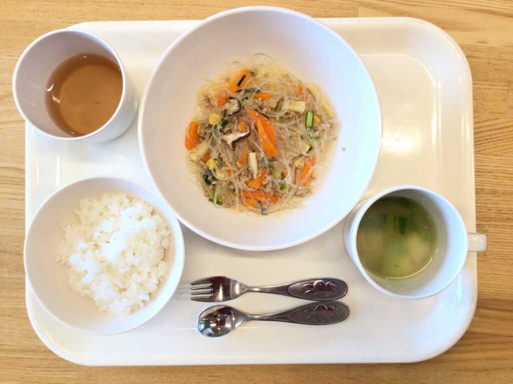 6月25日(火) お昼:ごはん・春雨のそぼろ炒め・中華コーンスープ おやつ:キャロットケーキ 春雨のそぼろ炒めは給食で人気のおかずで、暑くて食べが悪い時でも残さず食べてくれます。 暑くて食欲も落ちやすい時期なので少しでも食欲が増すように見た目や切り方など工夫していて おやつも手作りなので、野菜を取り入れたりしています。 6月24日(月) 前の記事 6月26日(水) 次の記事