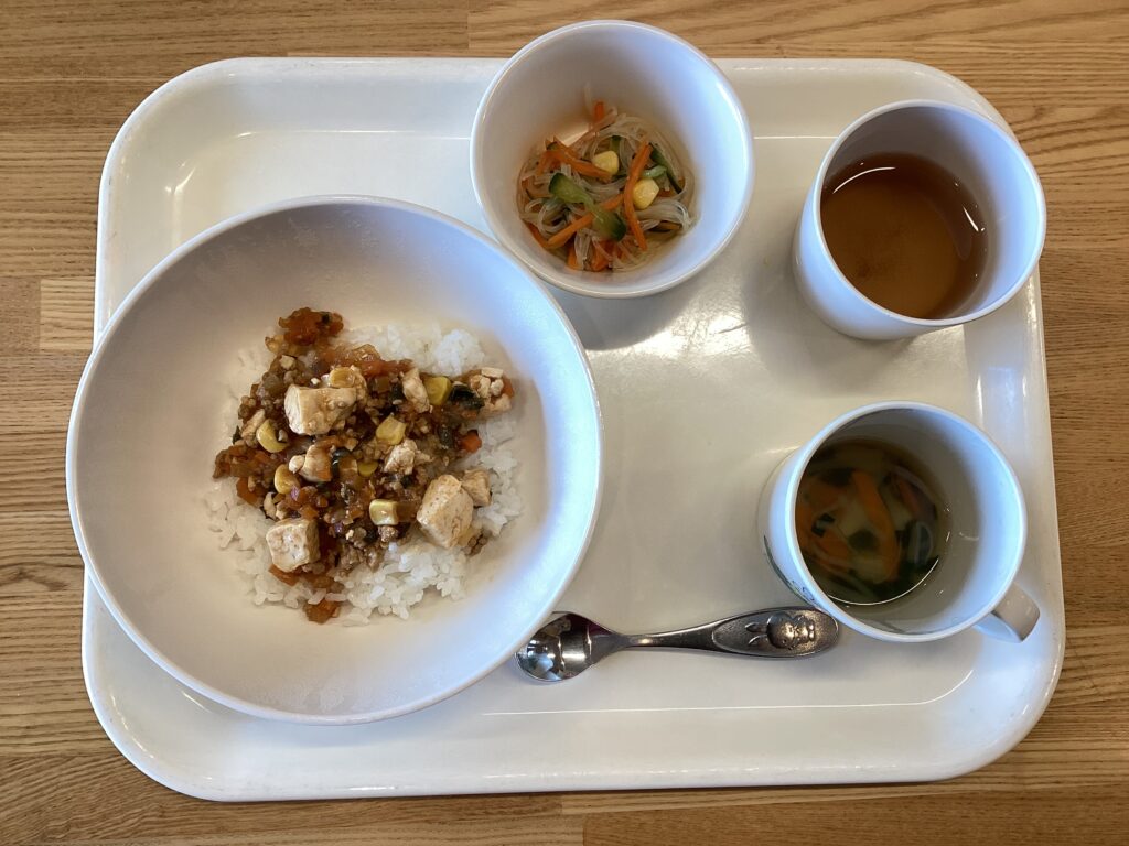 3月26日(木) お昼:麻婆豆腐丼・じゃがニラ汁・春雨サラダ おやつ:スティッククッキー 今日の麻婆豆腐丼には野菜がたくさん入っています 玉ねぎ、人参は手作業で細かくみじん切りしているので食感も彩りも楽しめる一品になっています 春雨サラダは春雨のツルツル食感が食べやすいからか喜んで食べていました スティッククッキーは持ちやすく、噛むとポロポロ崩れる食感が楽しめます♪ 3月25日(水) 前の記事 3月27日(金) 次の記事