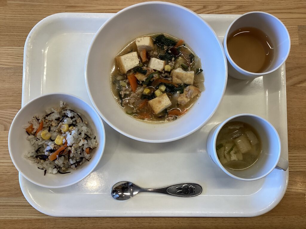 お昼:ひじきごはん・厚揚げの和風あん・みそ汁