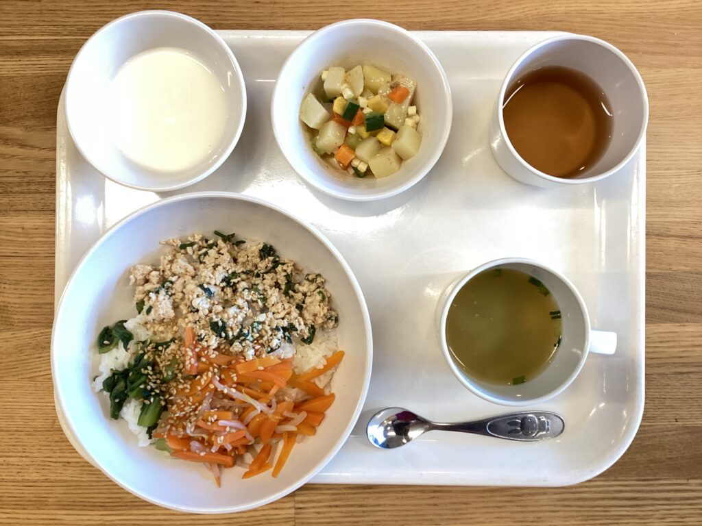 お昼:キッズビビンバ丼・中華コーンスープ・コロコロサラダ・ヨーグルト