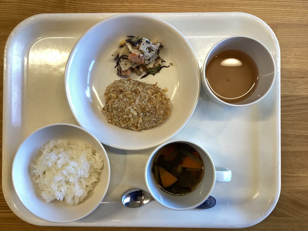 お昼:ごはん・さつまいもコロッケ・ひじきサラダ・すまし汁