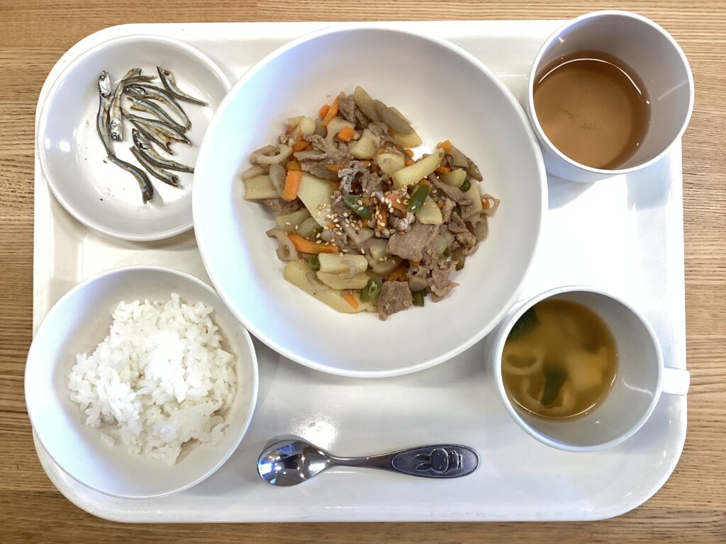 9月22日(月) お昼:ごはん・じゃがいもきんぴら・みそ汁・干しいわし おやつ:クッキー じゃがいもきんぴらに使用しているじゃがいもはビタミンⅭ、カリウム、食物繊維 ビタミンB群などが豊富で、免疫力向上、腸内環境の改善、疲労回復など 体にとって多くの良い効果が期待できます おやつのクッキーの時は動物などの顔の形に形成して提供しています 「今日のクッキーの形は何かな⁈」と子どもたちは楽しみにしていました 9月19日(金) 前の記事 9月24日(水) 次の記事