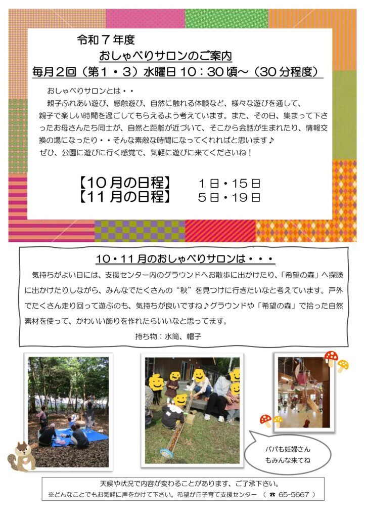 公園に遊びに行く感覚で気軽に遊びに来て下さいね。