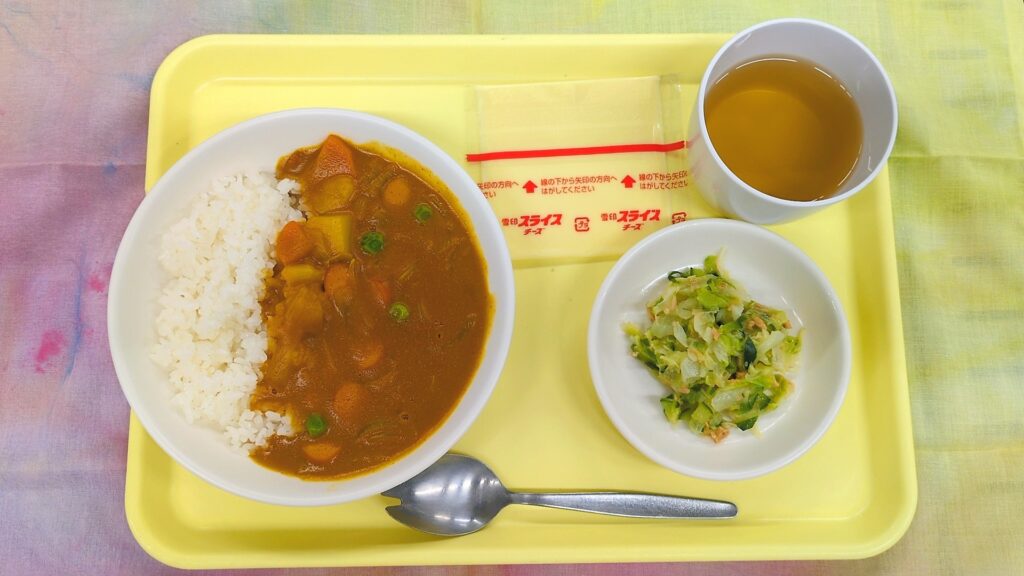 今日のメニュー 11月11日(火) ウインナーカレー ツナとキャベツのサラダ チーズ 今日のカレーはお肉の代わりにウインナーを使った、ウインナーカレーです。 ウインナーの旨味がカレーに溶け込み美味しく出来上がりました。 子どもたちが大好きなカレーは、色んなお肉や野菜を使うことでバリエーションも増え、手軽に必要な栄養素を摂ることができていいですね。 フレンチドレッシングで和えたサラダはさっぱりして、こってりとしたカレーの後味をすっきりさせてくれました。 今日のメニュー 前の記事 今日のメニュー 次の記事