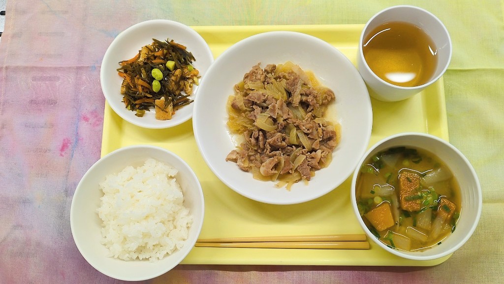 今日のメニュー 12月11日(木) ごはん みそ汁 豚肉のしょうが炒め 昆布の煮物 今日は豚肉しょうが炒めです。 生の生姜にはタンパク質分解酵素が含まれており、肉を漬け込むことで繊維を分解し、柔らかくする効果があります。 ただし、市販のチューブ入り生姜は加熱処理されている事が多いため、この酵素の働きはあまり期待できないそうです。 今日の昆布の煮物には人参、油揚げ、枝豆を入れて煮ました。 油揚げを入れる事によって油揚げの出しが出てより美味しく仕上がりました。 今日のメニュー 前の記事 今日のメニュー 次の記事