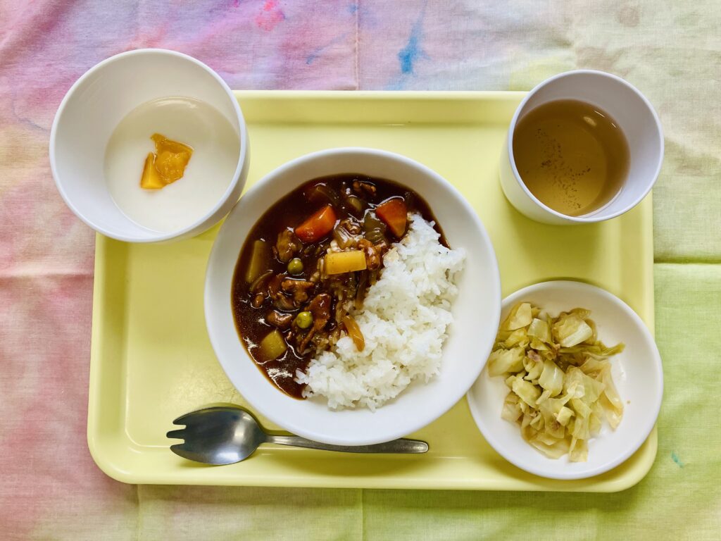ツナソテーにはキャベツとピーマンが入っていて、苦手な子は苦戦していたようですが、ツナの旨みも出ていて、美味しかったよーと言っている子もいましたよ。