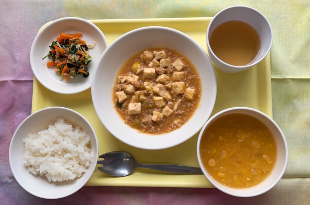 今日のメニュー 12月26日(金) ごはん コーンスープ中華風 麻婆豆腐 三色のツナ酢和え 今日の献立は豆腐がたっぷり入った麻婆豆腐に、コーンの甘みをいかした中華風コーンスープ、色とりどりの野菜を使った三色ナムルを組み合わせました。給食室にもおいしかったよと声をかけてくれる子どもたちがたくさんいました。 今日のメニュー 前の記事 今日のメニュー 次の記事