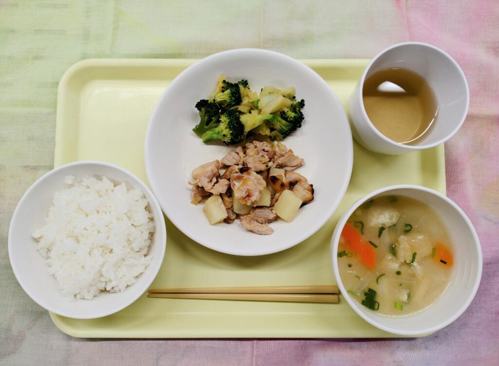 ごはん みそ汁 照り焼きチキン キャベツのソテー