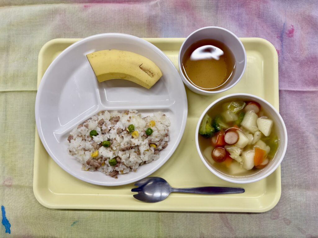 今日のメニュー 3月6日(金) ピラフ 春野菜のポトフ バナナ 今日はピラフと春野菜のポトフとバナナです。ピラフは豚ひき肉と玉ねぎ、コーン、グリンピースのシンプルな具材で塩とコンソメで味付けしてあります。 春野菜のポトフは具だくさんで、彩りよく仕上がりました。 今日も子どもたちはたくさんおかわりをしてくれたようです。 今日のメニュー 前の記事 今日のメニュー 次の記事