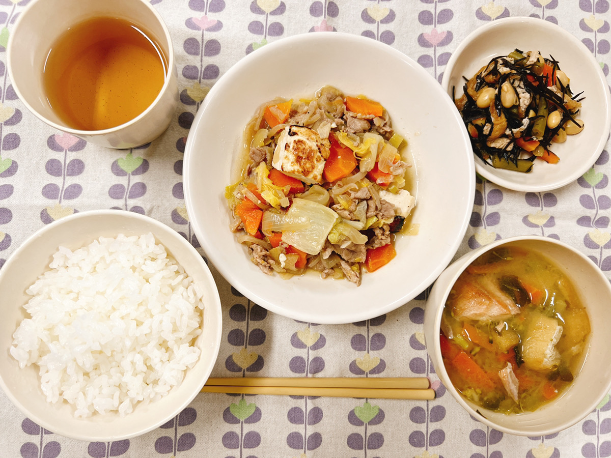 ごはん    すきやき    ひじきの炒め煮    北海みそ汁