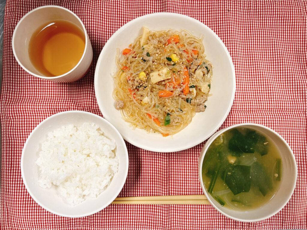 ごはん    春雨のそぼろ炒め    中華風コーンスープ