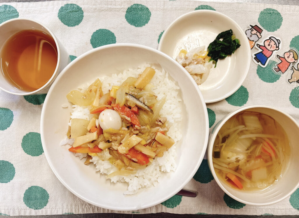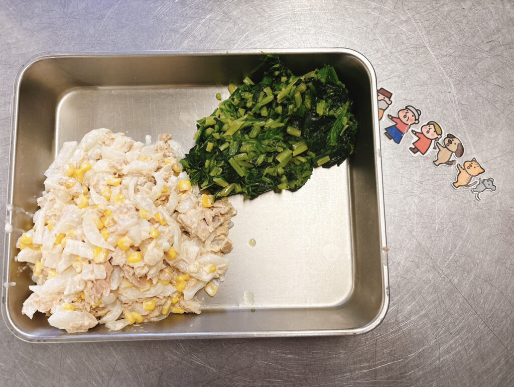「大きなかぶ」(給食)と「ぐりとぐら」(15時のおやつ)の絵本献立