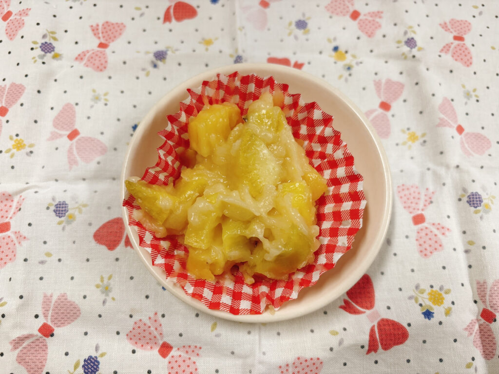 給食の和風マヨサラダでは、薄切りのシャキシャキとした食感を楽しめます!