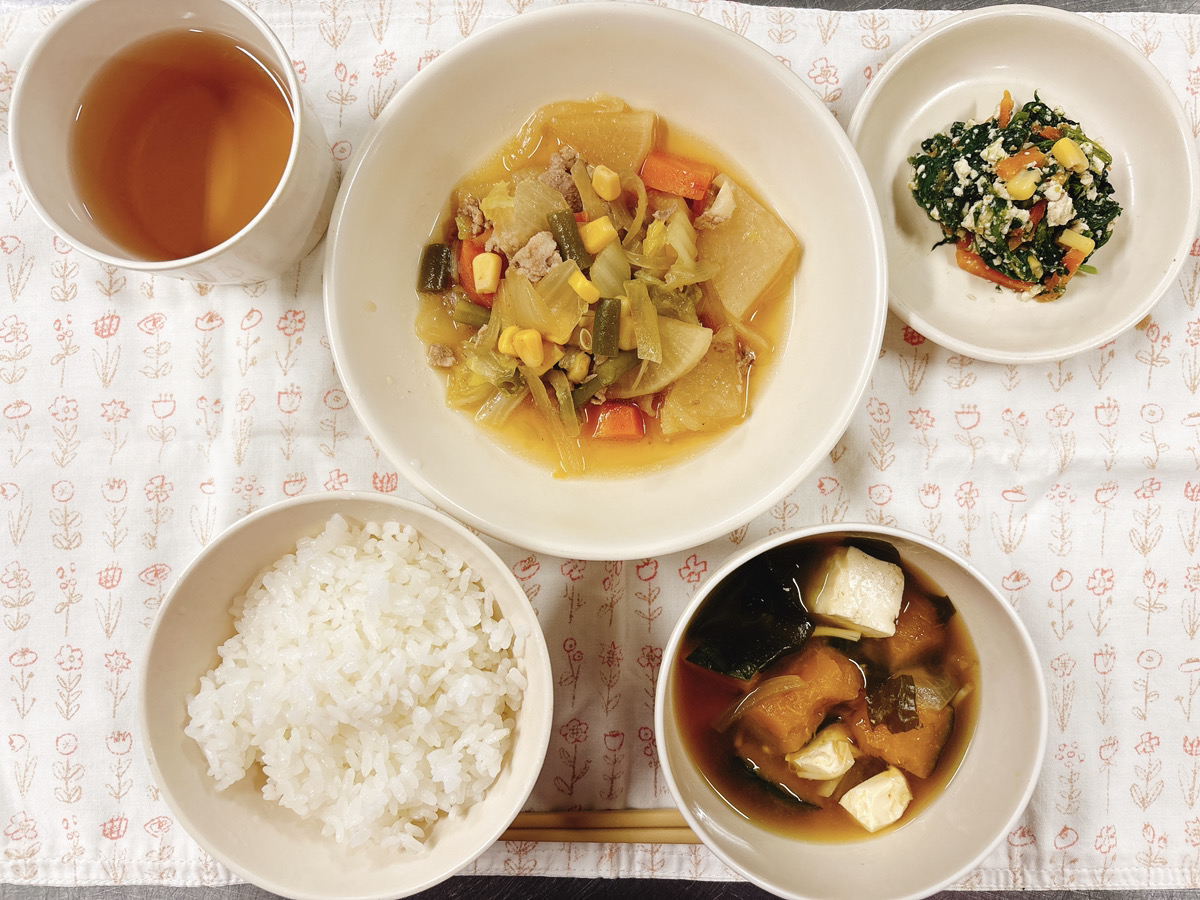 豚肩ロースと大根、白菜、人参など色々な野菜と栄養がたっぷり入った料理です。
