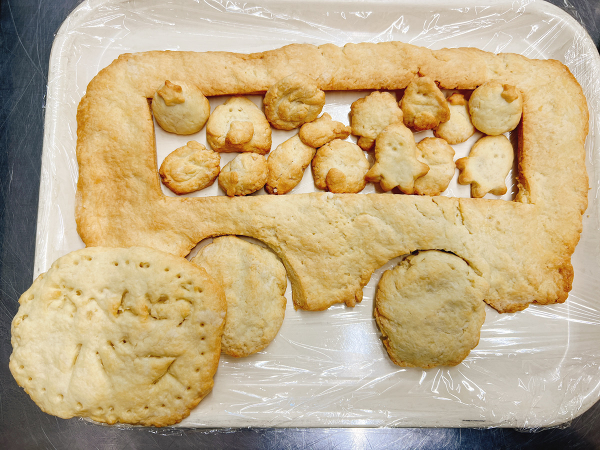 絵本の中に出てくるバスやいろいろな食べ物たちをクッキーで表現します👩🍳