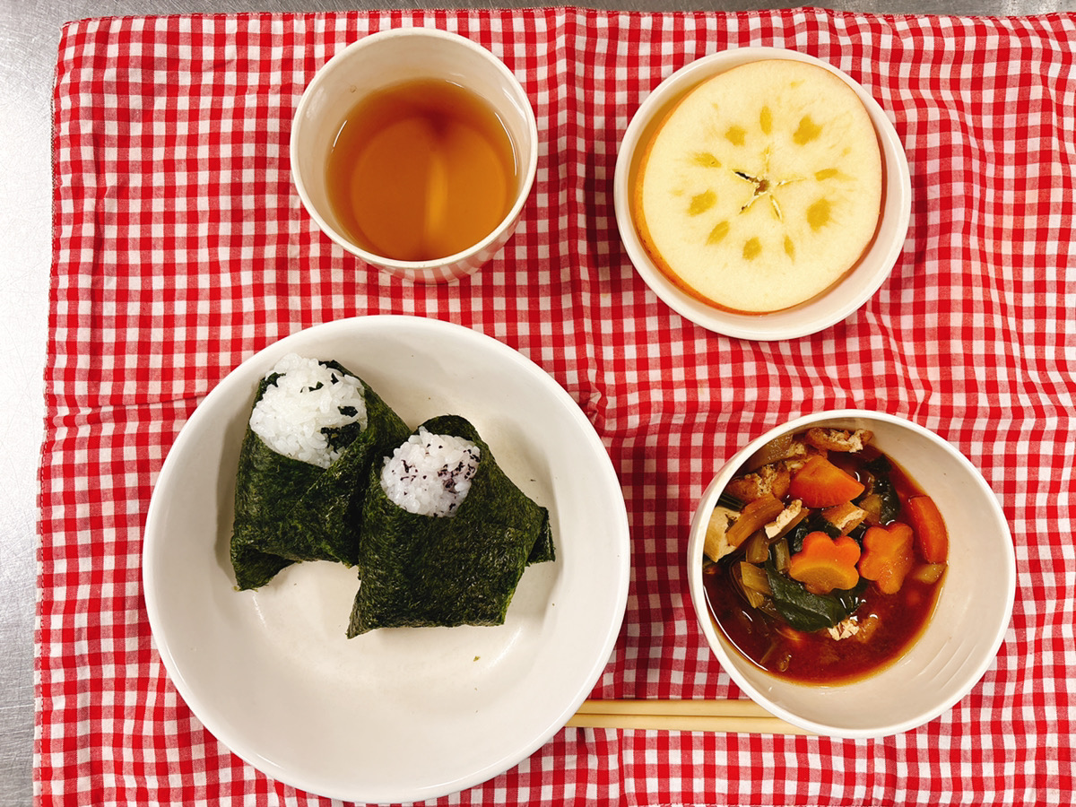 豚汁には、園の農園で採れたほうれん草が入ります!
