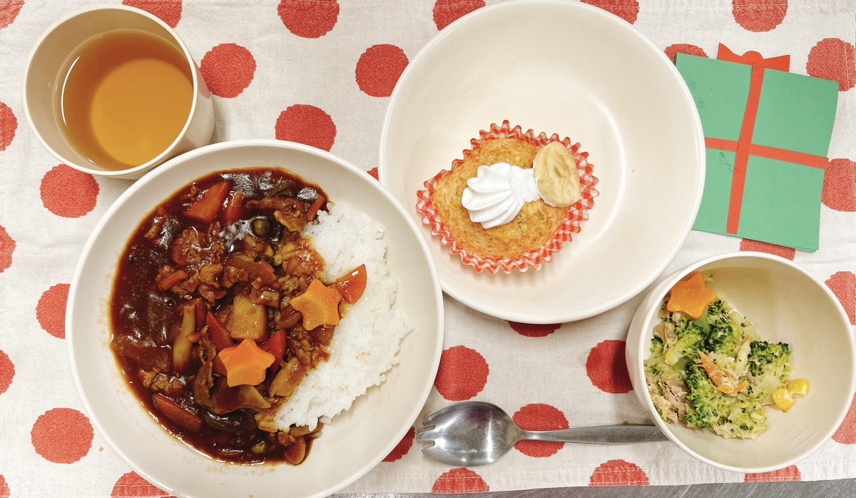 ハヤシライス  ツリーサラダ  クリスマスデザート