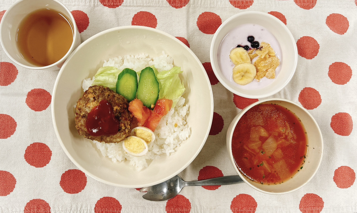 ロコモコ丼風 ひよこ豆とビーンズのハワイアンスープ アサイーボウル風