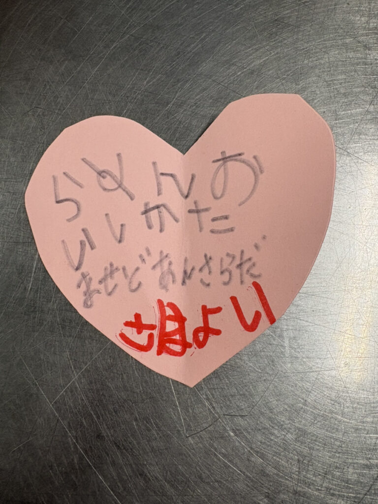 こんなかわいいお手紙をもらいました♪ありがとう!(調理員より)