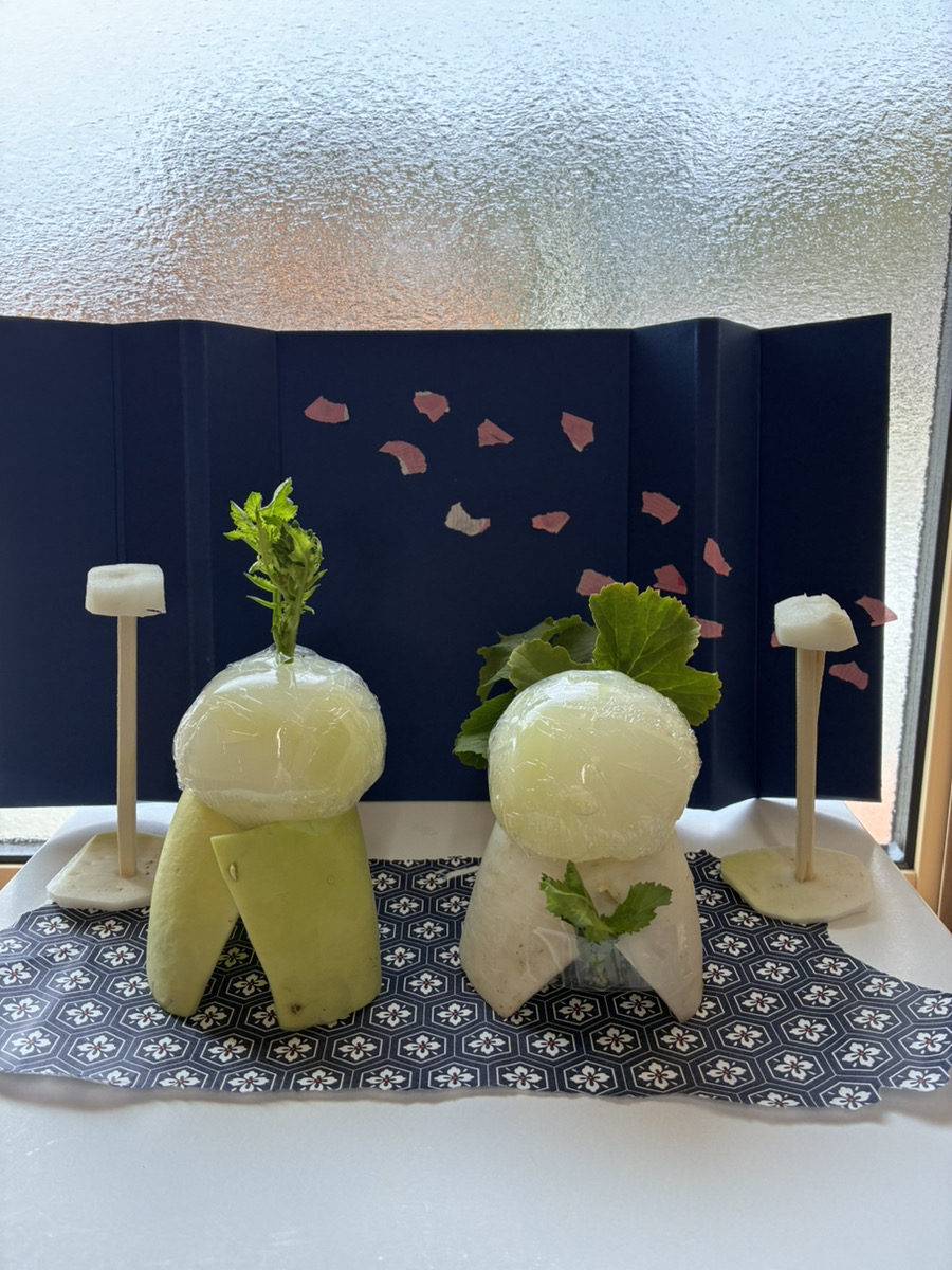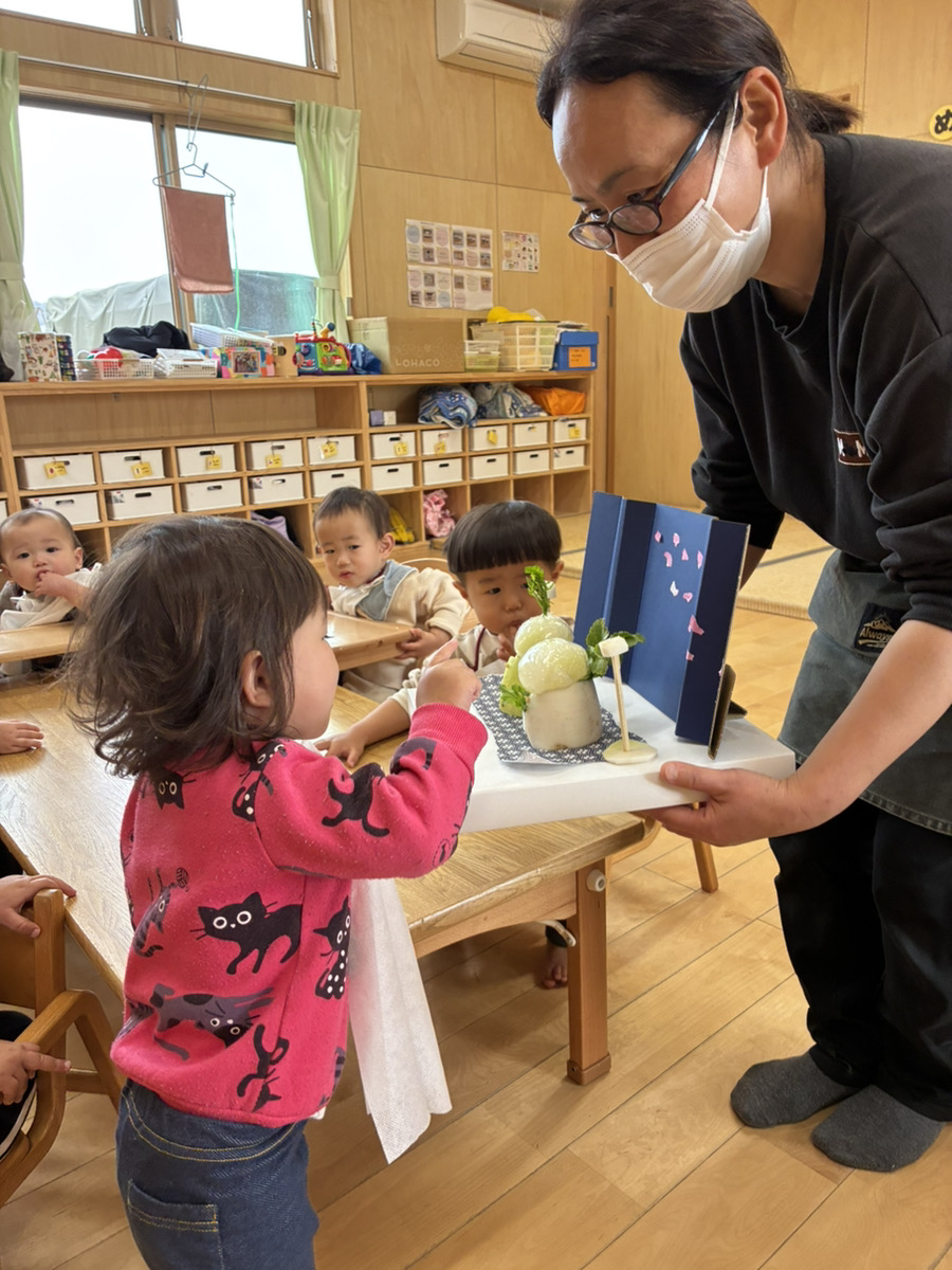 0歳児クラスでの食育の時に、こんなお雛様もできました♪