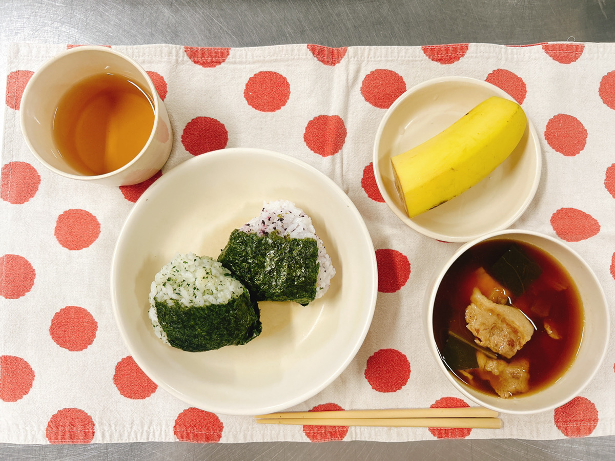おにぎり(かおり・ゆかり)  豚汁  バナナ