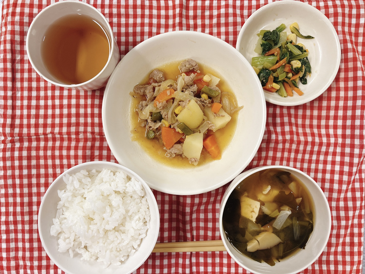 ☝️胡麻和えはチンゲン菜、みそ汁には、小松菜を使用します。同じ青菜の仲間ですが、2つの野菜の見た目での大きな違いは茎の太さです。茎が細いのが小松菜、太いのがチンゲン菜です。見た目や味など食べ比べて違いを探してみてください🔍