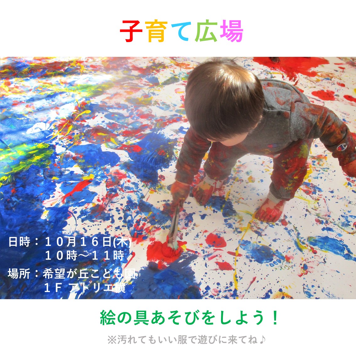 10月 | 16日 | (木) | 10:00~11:00 | こども園(アトリエ、戸外) | 絵の具あそび |