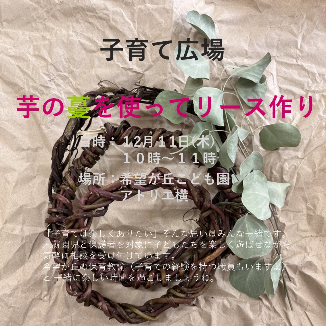 | 12月 | 11日 | (木) | 10:00~11:00 | こども園(アトリエ横) | 芋の蔓を使ってリース作り |