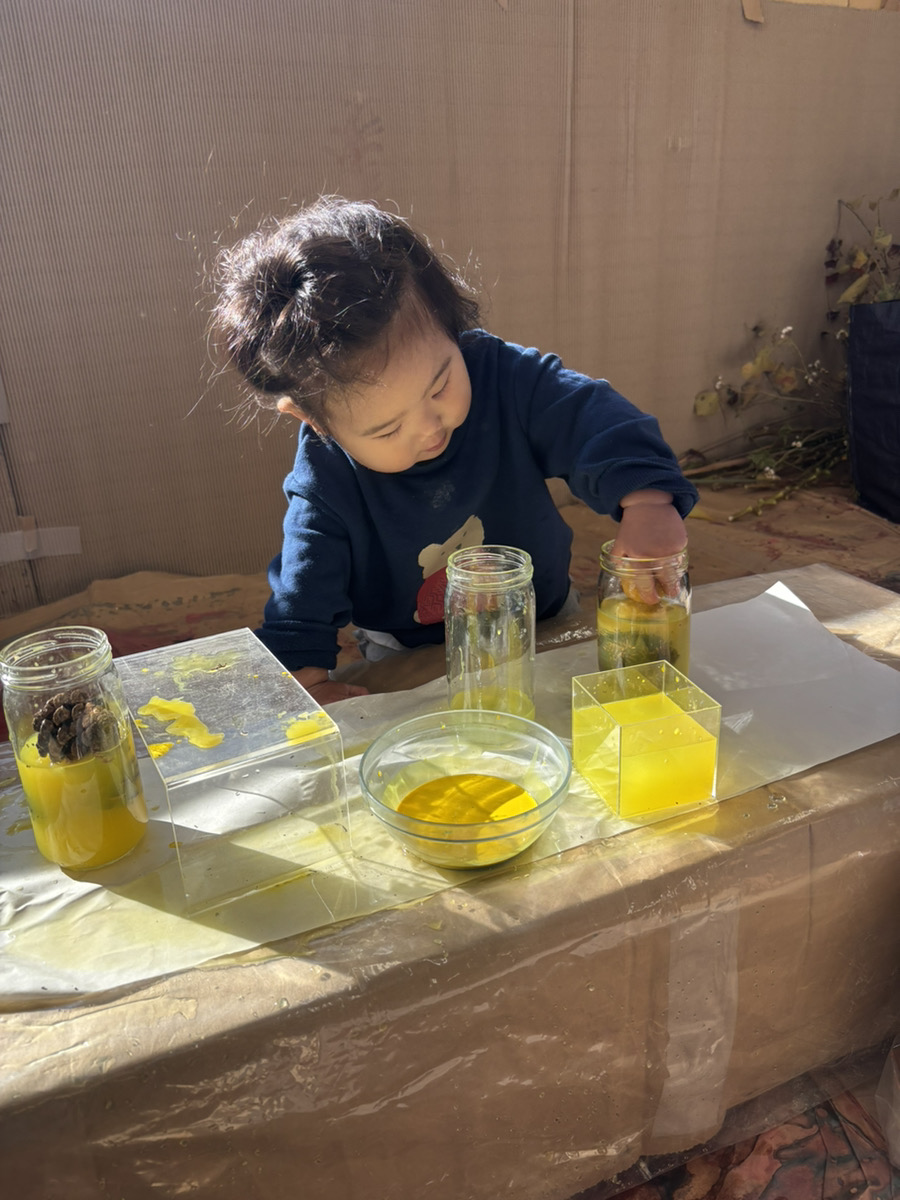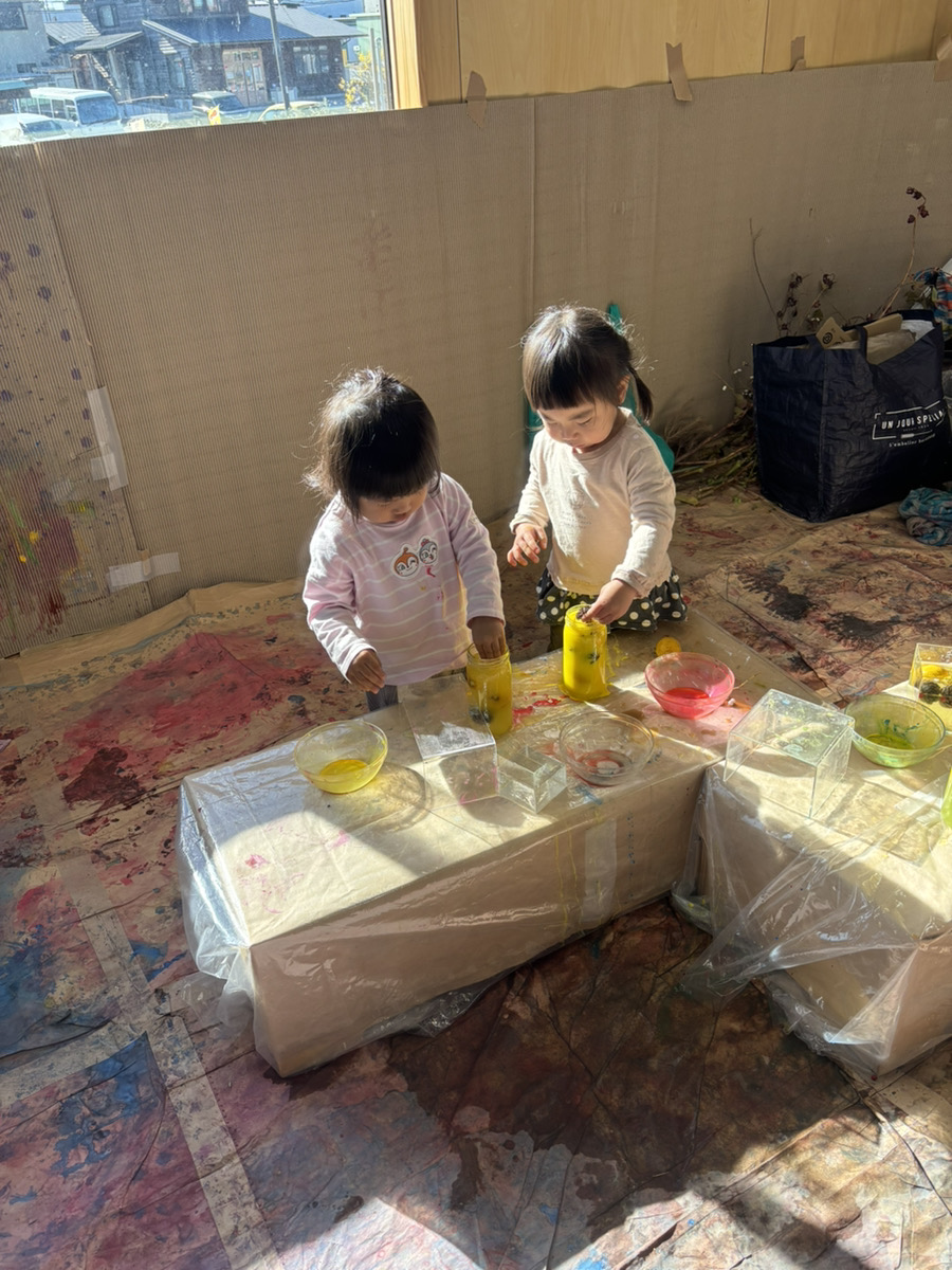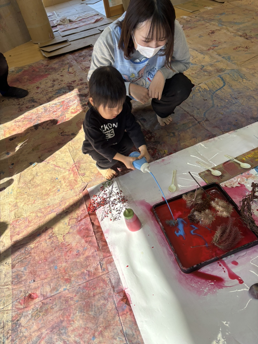 園(明睦学園)では、堀井みちこさん※が月2回ほど来て下さり、子どもたちと造形活動を一緒に楽しんでくれたり、職員と造形活動についての計画から振り返りをしながら学びを深める活動をしてくれています
