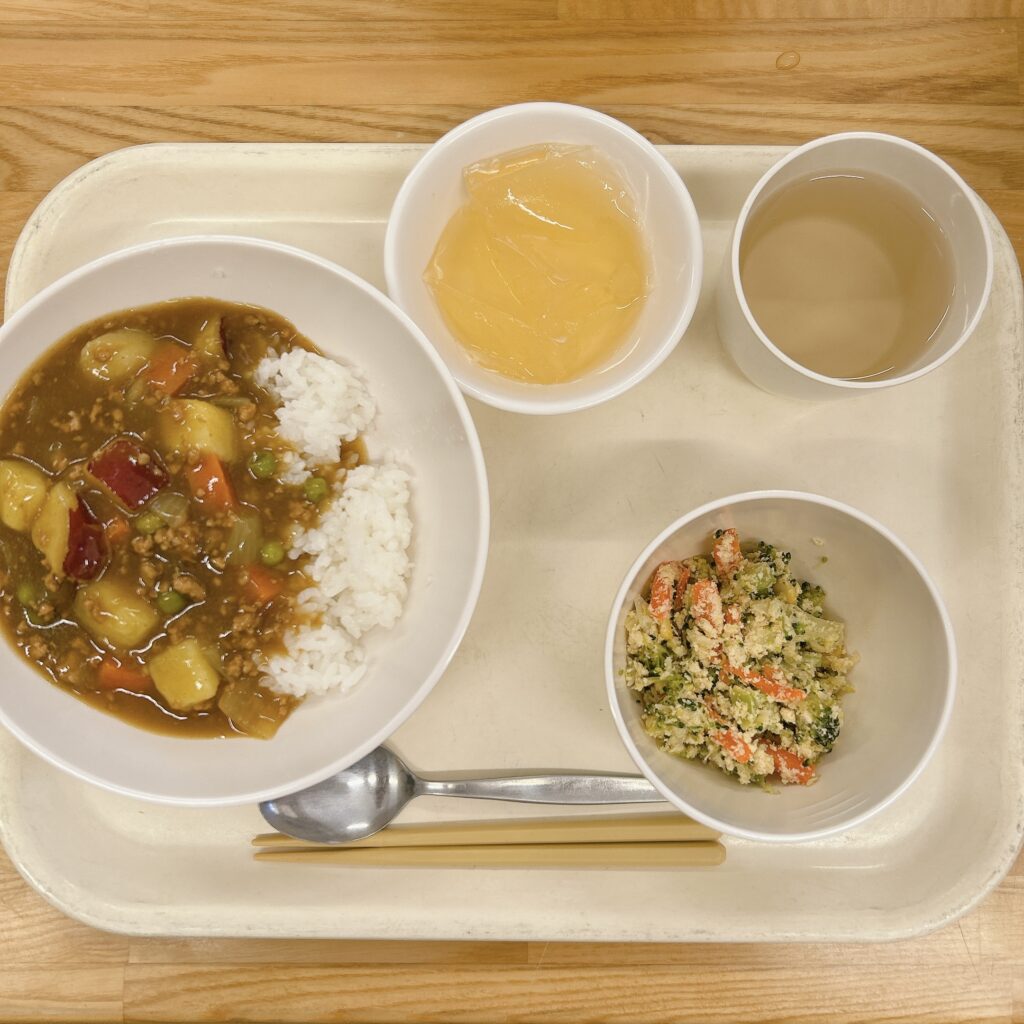 1月21日 (水) カレーライス おからサラダ りんごゼリー 「今日カレーライス?カレーの匂いがした!」「いい匂いがするー早く食べたいよー」などカレーのいい匂いで調理室を覗いてくれる子が多かったです。さつまいもが入って甘く美味しいカレーだったので今日もたくさん食べてくれていました! 玉ねぎとベーコンのスコーン 1月20日(火) 前の記事 1月22日 (木) 次の記事