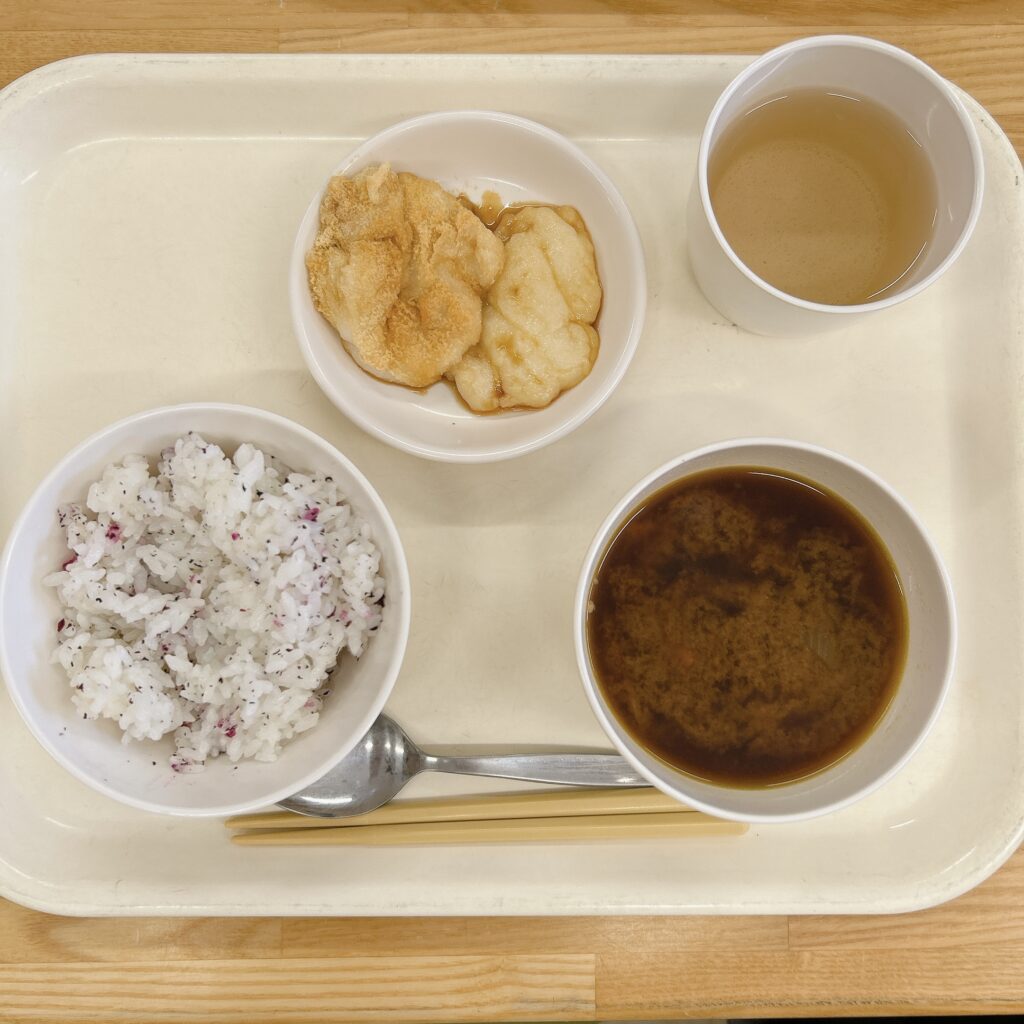 12月19日 (金) ゆかりごはん 豚汁 餅 今日はもちつき会でした。朝から調理室に「おもちはやく食べたいー!」「おもちできた?」などワクワクした様子で蒸している餅を見ている姿がありました。また「調理員さんの餅おいしかったよ!」と教えてくれました♪ ハムチーズマフィン 12月19日(金) 前の記事
