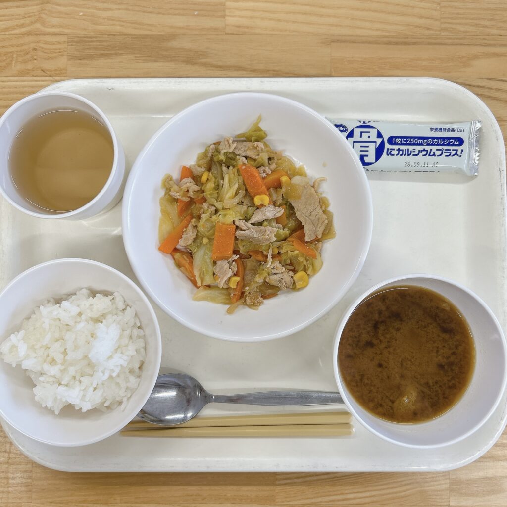 2月20日(金) ごはん 豚肉のしょうが炒め 味噌汁 ウエハース 生姜は炒めることで、「ジンゲロール」という成分が「ショウガオール」に変化し、体を温める効果がアップします。豚肉などビタミンB1を多く含む食材と摂ると疲労回復の効果も高まり、おすすめの食べ合わせです。 コンソメポテト 2月19日(木) 前の記事 2月20日(金) 次の記事