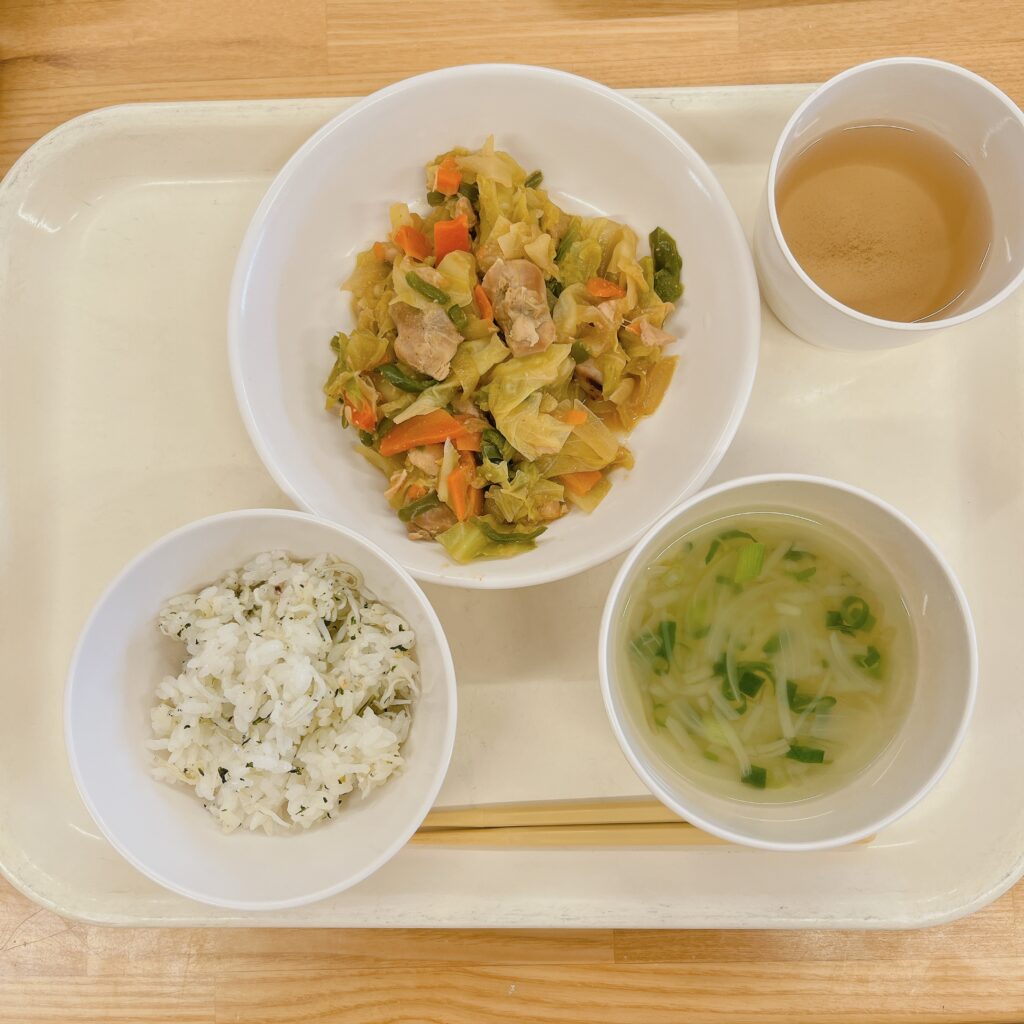 2月4日(木) しらす菜飯ごはん 鶏肉の味噌炒め 春雨スープ 鶏肉の味噌炒めは、合わせ味噌を使い甘辛く味付けをしました。寒い時期のキャベツは甘みが強く、炒め物にもおすすめです。 アップルパイ風マフィン 2月3日 (火) 前の記事 2月4日(水) 次の記事
