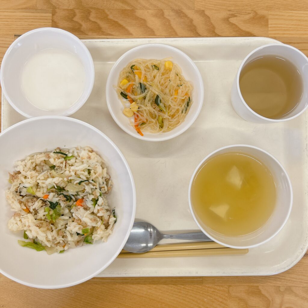 3月4日(火) しらすチャーハン 春雨サラダ 中華スープ ヨーグルト しらすチャーハンは鶏がらで少し味付けをして炊いたごはんに、大きな鍋で炒めた具材を混ぜ込んで作っています。しらすにはカルシウムとその吸収を助けてくれるビタミンD、DHAやEPAなど成長に欠かせない栄養がたっぷり含まれていますよ。 さつまいもとりんごのマフィン 3月3日(火) 前の記事