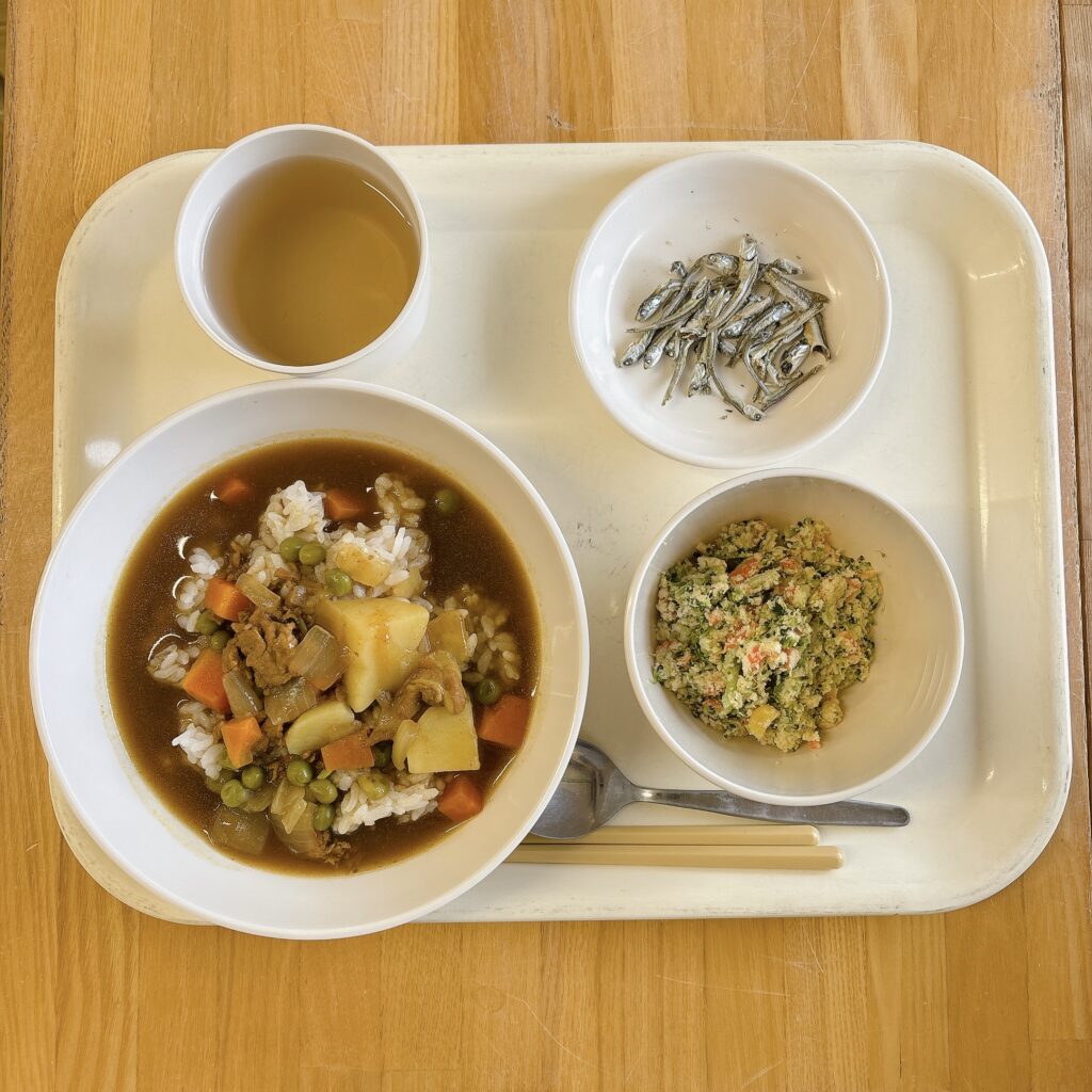 4月13日 (月) カレーライス おからサラダ 干しいわし 今日は、乳児はしらす、幼児は干しいわしが出ました。あまり馴染みのない食材かなと思いましたがどのクラスもペロリと食べてしまいおかわりをしている子もいました。中にはどうやって作ってるの〜などの声もありました。干しいわし、しらすはカルシウム・鉄分・DHAがしっかり補給できるので積極的に取りたい食材の一つです。カレーライスにはグリンピースが入っていましたが好き嫌いする様子もなく食べてくれていました。おからサラダもレシピを教えて欲しいの声が多くありました。 オレンジゼリー 4月10日 (金) 前の記事 4月13日(月) 次の記事