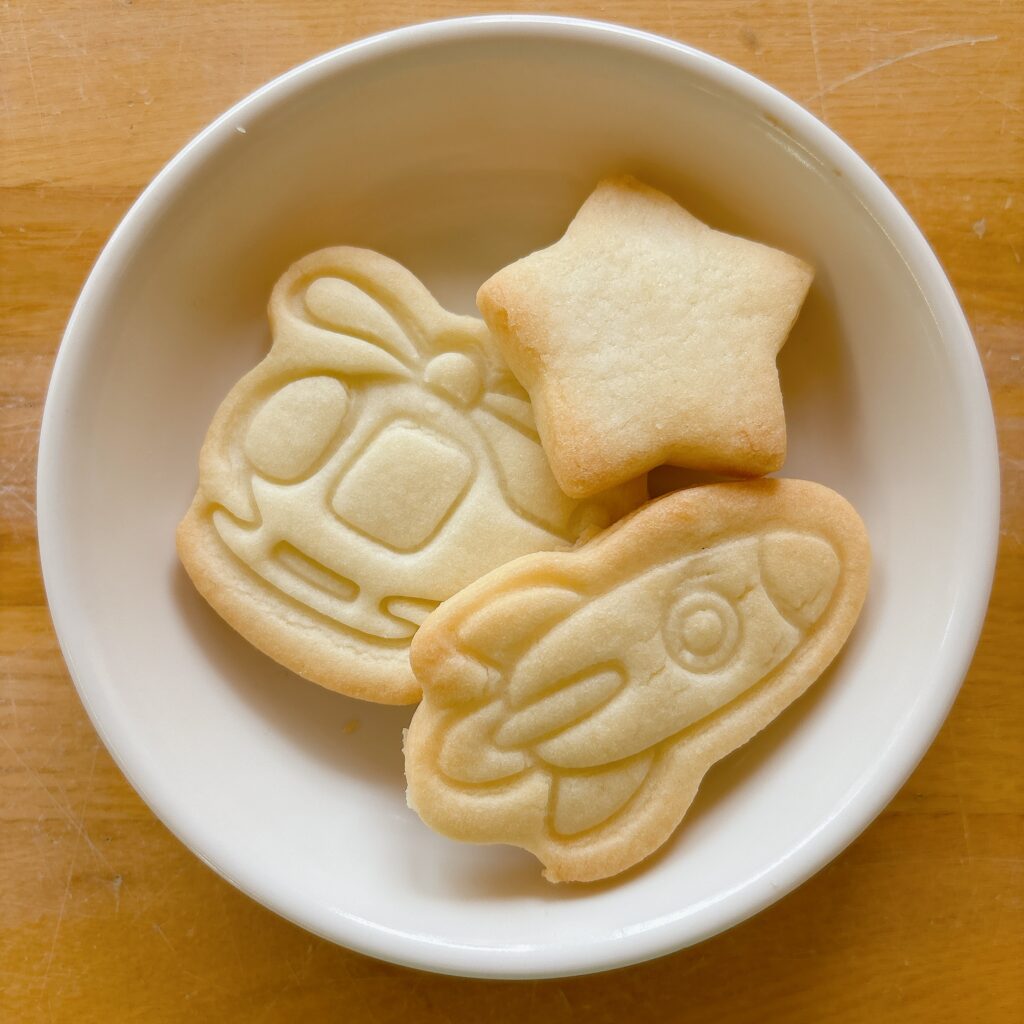 今日の給食は春キャベツ入りの焼きそばでした。ちゅるちゅる〜って喜んでくれる子や細切りのピーマンが入っているのですが、このピーマンなら食べれる〜美味しいなど嬉しい声が聞こえました。春キャベツは、甘くやわらかで美味しいだけではなくビタミンCが豊富なので胃腸ケア+免疫サポート+腸活が同時にできる、季節の万能野菜です。今日は暑かったので冷たいリンゴゼリーに喜んでくれていました。おやつは型抜きクッキーでした。どんな型なのか朝から楽しみにしてくれていました。今日はロケット、はたらく車、星、お花でした。