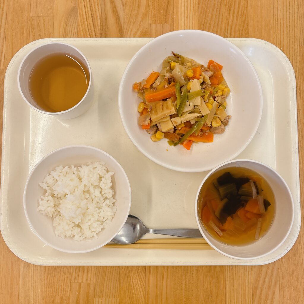 4月8日 (水) ごはん 肉とたけのこのこぶし煮 すまし汁 今日のこぶし煮には、春野菜の筍が入っています。他にも鶏もも肉、さやえんどう、人参、玉ねぎなどお野菜がたっぷり入っています。鰹出汁を取り、素材の味をしっかり感じられる出汁ベースのやさしい味に仕上げてあります。完食してくれるクラスも多かったです。 きなこスコーン 4月8日(水) 前の記事 4月9日 (木) 次の記事