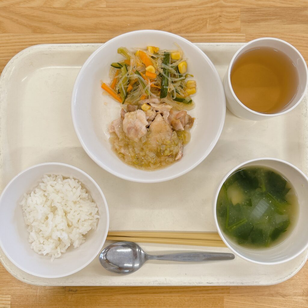 9月26日 (金) ごはん 油淋鶏 バンサンスー コーンスープ バンサンスー(4人分) 春雨30g (2cm) 人参60g(千切り) きゅうり100g(千切り) コーン缶30g 【砂糖小1 醤油小2 酢小1と1/2】 ①春雨を茹でる。②人参が柔らかくなるまでレンジで加熱する。③春雨、きゅうり、人参、コーン缶と調味料を混ぜ合わせる。④味をととのえて完成です。 さっぱりしていて食べやすいサラダです。お家でも作ってみてください! マカロニあべかわ 9月26日(金) 前の記事 9月29日 (月) 次の記事
