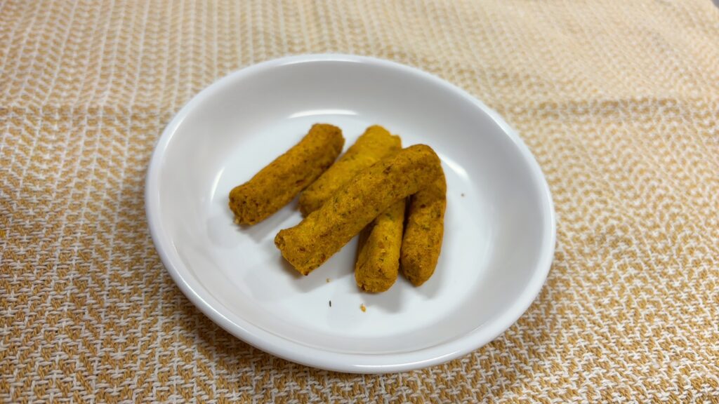 今日のメニュー 1月18日(木) ハッシュドパーク 野菜サラダ チーズ おやつ にんじんプリッツ にんじんプリッツは咀嚼を意識したおやつです。よく噛む事で、唾液が出て虫歯予防になったり、脳の発達を刺激したり、あごの筋肉がつく事で言葉の発音が良くなるなどたくさん良いことがあります。 園では、子どもたちの咀嚼の力を見て硬さを調節しています。程よいかみ心地と、よく噛むことで人参本来の素材の味がふんわり出てくるのが、子どもたちにもお気に入りのおやつとなっています。 今日のメニュー 前の記事 今日のメニュー 次の記事