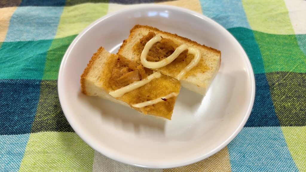 野菜が苦手な子は最初は手をつけなかったのですが「お肉だよ。」と伝えるとご飯と一緒に“ぱくっ!”「どんな味だった?」と聞くと「かわったあじだねぇ。」と教えてくれて思わず笑顔に。カレーじゃないけどカレーの味がする炒め物は子どもたちからも人気でした。