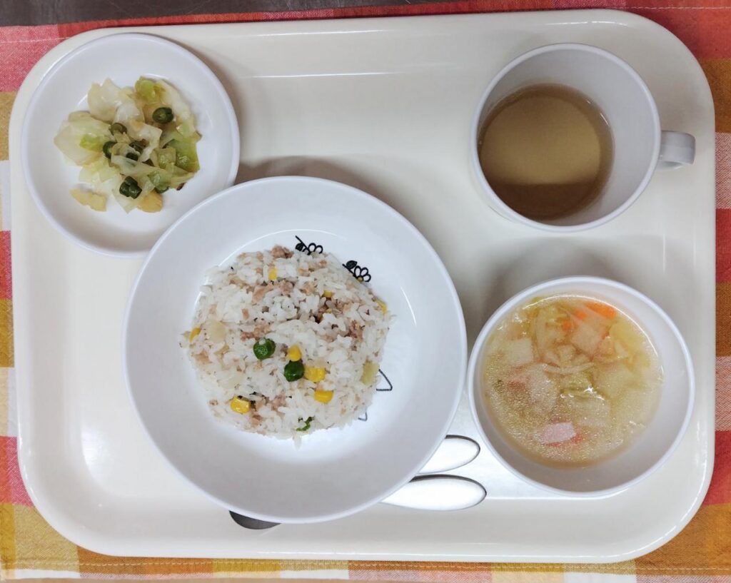 今日のメニュー 10月23日(木) ピラフ 白菜とウインナーのスープ キャベツソテー キャベツソテーは、見た目で少しだけ口にするこどもがいたようですが食べてみるとキャベツの甘みを感じることができいつもよりたくさん食べられるこどもがいたようです。 ピラフも、スープも野菜からの旨味が出て優しい味付けになりました。 おやつ ふラスク 今日のメニュー 前の記事 今日のメニュー 次の記事