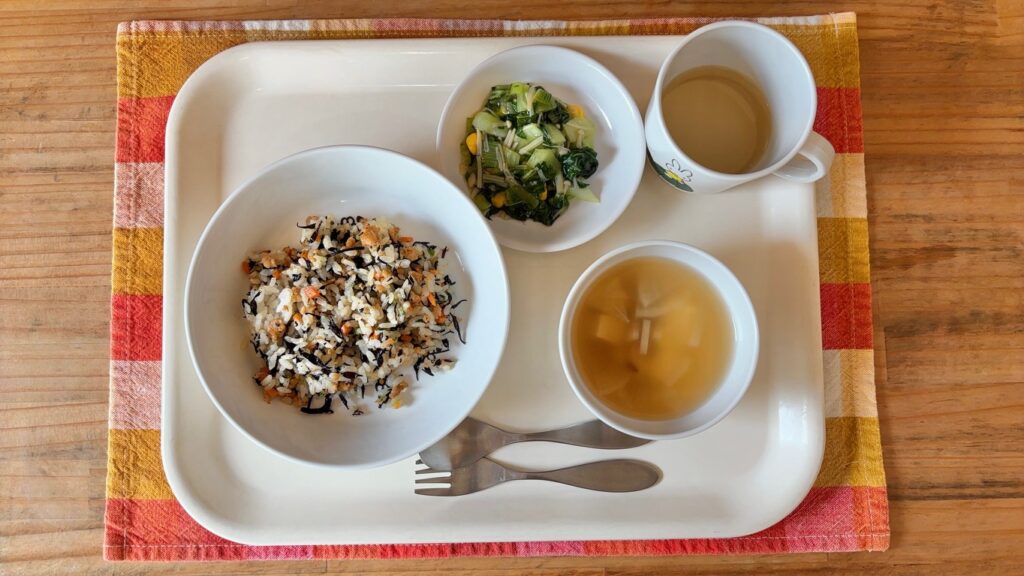 今日のメニュー 11月12日(水) ひじきチャーハン だいこんの中華スープ チンゲン菜のとろみ炒め チンゲン菜は栄養価がとても高い野菜です。貧血予防の鉄・強い骨を作るカルシウム・抗酸化作用のあるβ-カロテン・健やかな肌を保つビタミンC・身体の水分を調整するカリウム、といった効能や栄養を含んでいます。ぐんぐん成長していく子どもたちに嬉しい栄養がいっぱいです。今日はかつおだしの効いたとろみ炒めで提供しました。 おやつ マカロニ安倍川 今日のメニュー 前の記事 今日のメニュー 次の記事
