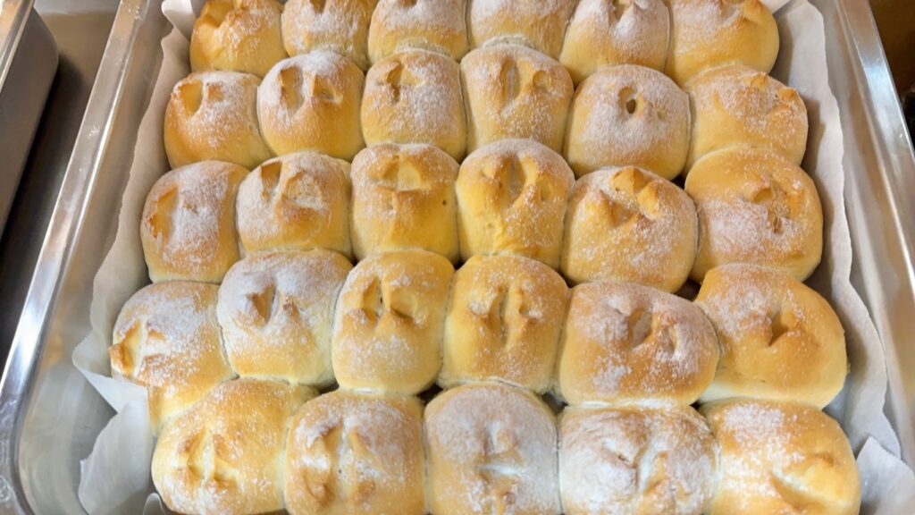 今日は子どもたちの大好きなメニューで食べる前から「おかわりある?」と聞いていました。希望の丘のお友だちも「ぜーんぶ、いっぱいいれて!」とリクエストしていました。口の周りをケチャップで赤くしながら「おいしいよ!」と教えてくれるかわいい子どもたちでした。